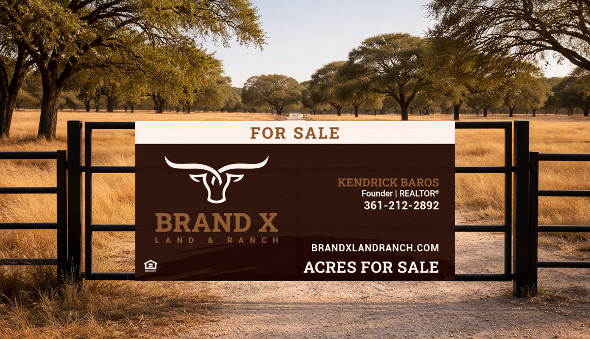 Brand X Land & Ranch is a Texas-based real estate brand focused on land and ranch properties across Central and South Texas. Rooted in local expertise and a strong connection to the ranching community, the identity reflects a grounded, heritage-driven approach through earthy tones, classic typography, and a logo that uses intersecting longhorns to create an 'X,' directly tying to the brand name.